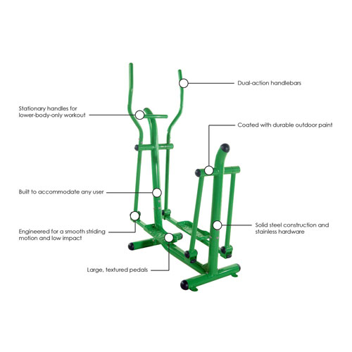 Outdoor fitness strider offers a full-body workout that targets your quads, hamstrings, glutes, chest, back, triceps, biceps, and other muscle groups