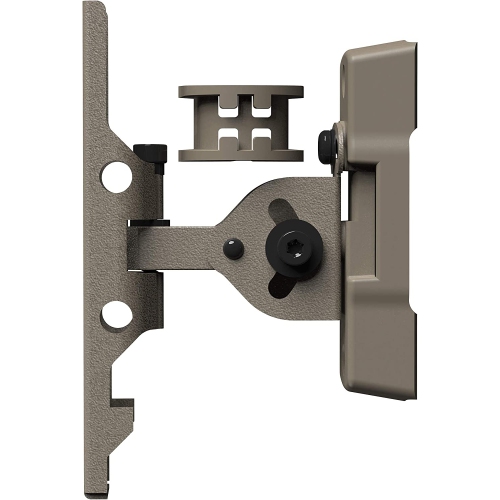 Mounts most brands of trail cameras to a tree or post easily by using screws or a strap (screws included, strap not included) Allows the trail camera to be mounted higher up, and aimed as required. Left or right and up or down adjustments are quick and easy. Cameras slide on and off and can be padlocked (padlock not included) With the Pan Tilt mount you slide the camera off of the mount, check the camera, then slide it back on while retaining the original aim All metal rugged construction › See more product details
