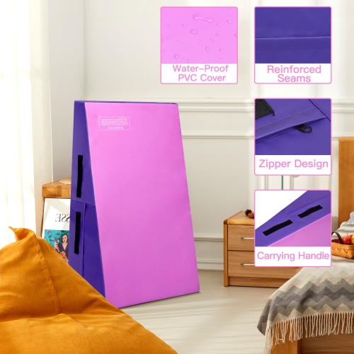 Our small size cheese wedge mat is perfect for those new to gymnastics, coaches, and seasoned gymnasts alike, from beginners to winners. The gym mat is made of high-quality, tear-resistant PVC covering and high-density EPE foam to withstand tumbling, jumping and rolling without ripping or breaking. The slope presents a suitable angle, which conforms to the ergonomic design and meets the training needs of trainers of different levels. In addition, the zipper seal design is convenient for you to change the padding and wash the cover. Smooth and waterproof surface can be scrubbed with wet cloth. The lightweight and compact design can be able to carry and store easily. Take it home and exercise at once!