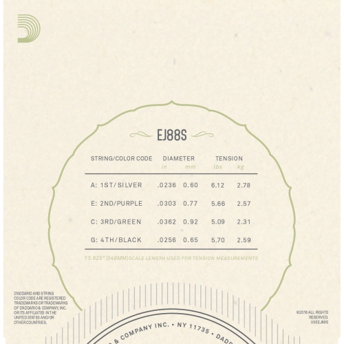 D'Addario EJ88S sets are designed for use with all soprano ukuleles. Each string within this set is made from our exclusive Nyltech material and optimized for GCEA tuning. Developed in cooperation with Aquila, D'Addario Nyltech strings are an exclusive combination of materials designed to deliver an optimal combination of warm, yet punchy tone, comfortable playability, precise intonation and tuning stability not found in other ukulele strings.