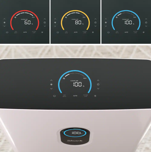 The Shark Air Purifier 6 quietly distributes air through 6 powerful fans. Clean Sense IQ technology tracks air quality & auto-adjusts power to constantly maintain clean air in your home. A Shark Anti-Allergen HEPA Filter captures airborne allergens, dust, dander, and particles. Advanced odor protection guards against cooking smells, smoke, and more. Cleans large spaces.