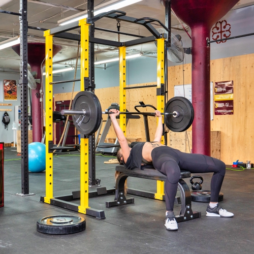 For maximum safety, weight lifting exercises should always be performed inside the cage with the safety bars in place. The exercises shown in the photos are performed by fitness professionals and are intended to show the versatility of the product. Users should always exercise caution and be aware of their limits when performing strength training exercises. Please make sure the product is fully assembled on level ground and all bolts are in place and tight before using this product.