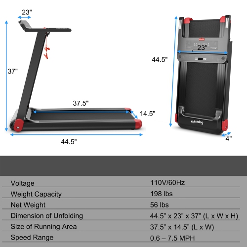 0.6 - 7.5 MPH adjustable speed for walking, jogging and running