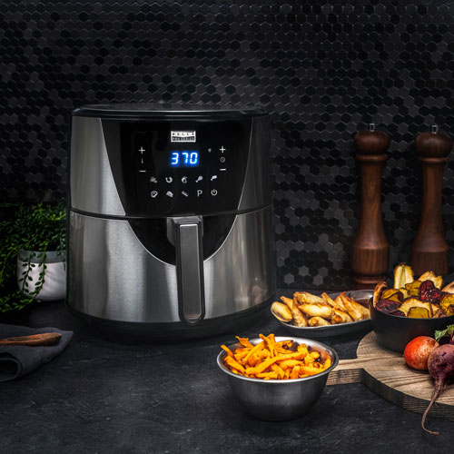 Digital touchscreen display with adjustable temperature control can be set to 180-400 degrees Fahrenheit to accommodate a wide range of foods