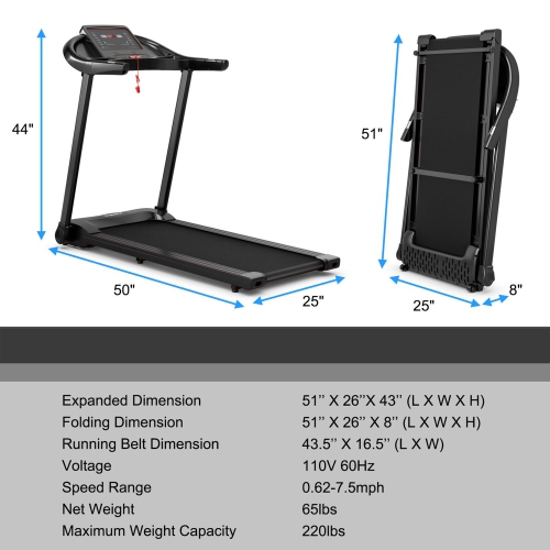 , the treadmill allows you to walk, jog and run. Thanks to the high-performance motor, you can enjoy the fun of indoor exercise in a quiet environment without disturbing others. And the wide running belt with shock-absorbing gives you the flexibility to workout while protecting your knees and muscles. Heavy duty steel frame guarantees super stability for long-lasting service time. Stay healthy with this multifunctional treadmill!