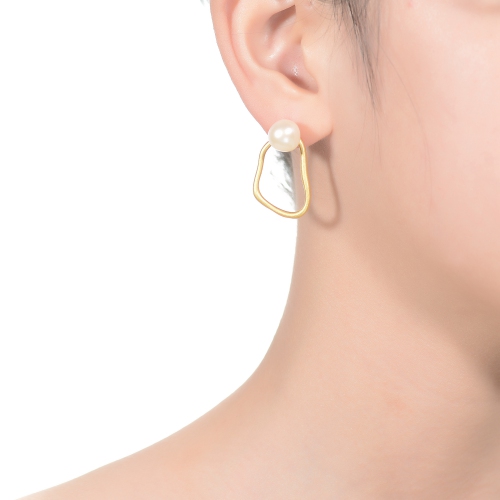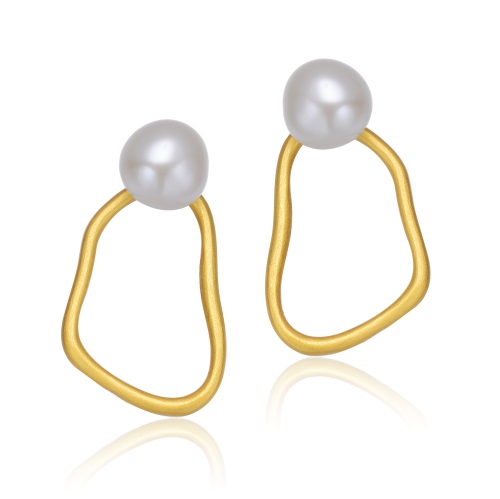 Rozzato Sterling Silver Gold Plated Freshwater Round Pearl Drop Earrings