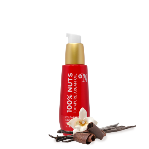 Boost the appearance of healthy, balanced, and nourished skin with the 100% NUTS Pure Argan Oil Dark Chocolate & Vanilla.