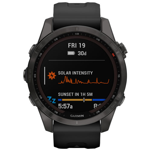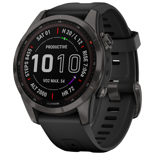 Garmin fenix 7S Sapphire Solar 42mm Smartwatch with HR Monitor - Carbon Grey/Black/Titanium Back