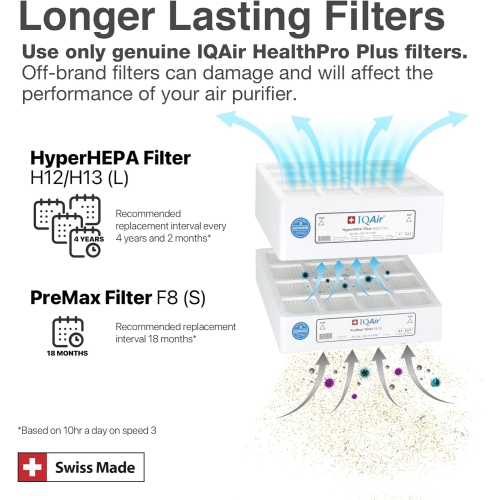 Features the same advanced HyperHEPA filter technologies as the HealthPro Plus, but in a smaller housing. It Does not include the V5-Cell gas and odor filter and cannot be upgraded to fit the V-5 Cell. Do not be mistaken by its smaller size, this unit has the ability to cover an area as large as 1240 sq. ft. and are built to the same standards and performance requirements as the larger models. At the heart of this revolutionary system is the exclusive IQAir HyperHEPA Filtration technology. A dense network of nanofibers effectively traps particles of all sizes. That includes viruses, pet dander, dust mites, other allergens and even cigarette smoke. While ordinary air cleaners are only tested for the largest 10% of particles, IQAir’s HyperHEPA filtration is tested and certified to filter 99.5% of all particles down to 0.003 microns. These are the smallest particles that exist.
