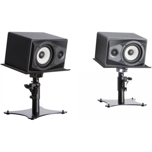 Perfect for mixing desks, this pair of our SMS4500-P Desktop Monitor Stands provides stable support for small speakers while reducing tabletop rumble and soundwave reflections. Adjustable height and platform angle facilitate precise speaker placement to optimize sound in a variety of spaces. Padding on the platforms protects speaker cabinets and rubber feet on the bases dampen vibrations.