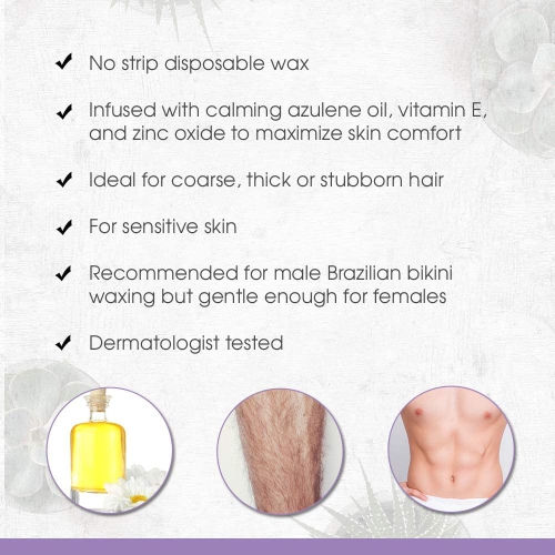 SATIN SMOOTH HARD WAX Titanium blue hard wax is created especially for men, but offers same great results for women. No strips required.Developed by renowned skin care specialists, these superior quality waxes are highly enriched with individual formulas.14 oz luxury depilatory waxes for full body & face.Made in Italy Features and Benefits : This antibacterial formula is infused with: azulene oil for its skin calming properties ; vitamin E which acts as a buffer and helps soothe and heal the skin; zinc oxide which protects against breakouts and promotes rapid healing of the skin.Suitable for full body and face, all hair and skin types, including sensitive skin and delicate areas.