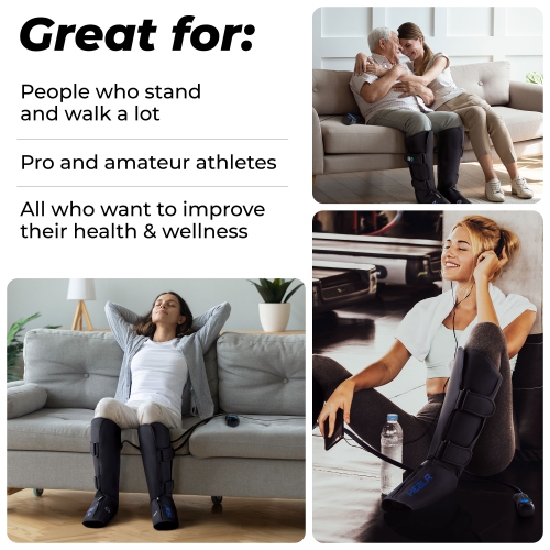●UNIVERSAL AND LONG-LASTING. With adjustable hook-and-loop fasteners, this leg and foot massager fits most sizes. The high-quality breathable rip-stop material that this portable calves and feet massager machine is made of will ensure its long life and, importantly, the comforting sensation against the skin. PLUS, you can take the leg massager for circulation with heat and cold therapies to your office or gym by putting it in a premium bag that’s included in the box.