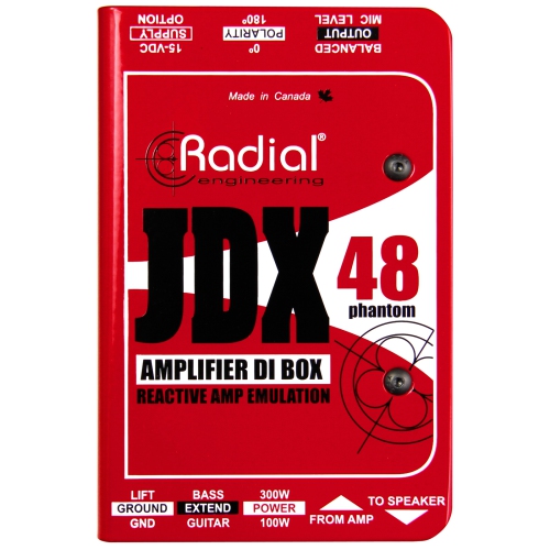The JDX 48 is a direct box designed to capture the sound of an electric guitar amplifier by connecting between the amp head and the speaker cabinet, providing a balanced feed for the PA system that sounds similar to placing a dynamic microphone in front of a 4x12 half stack cabinet. This gives you a more manageable sound for gigs where feedback is an issue or when using a microphone isn't an option. For artists that employ in-ear monitoring systems, the JDX 48 provides consistent tone in the monitor mix for shorter setup times before each gig.