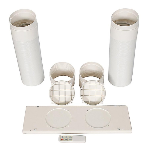 Three operational modes: air conditioner, fan or dehumidifier Cooling (61 degree F - 89 degree F) and heating (61 degree F - 77 degree F) thermostatic control with digital readout, 24 hour programmable timer Remote control, upgraded plastic window kit (36 inches max.), carbon air filter and washable pre-filter included Dehumidifying capacity of 101 pints per day, 3 fan speeds Casters for easy mobility Extendable exhaust hose