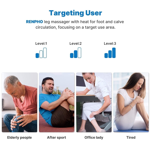 Perfect for foot leg massage. The leg massager is a perfect Christmas gift for parents, family, friends, and elders. Also a perfect Christmas gift. This leg massager can help release tight muscles and stress, eliminate muscle spasms, effectively help with RLS, swelling, and pain in the feet and legs.. RENPHO is well-known for its high-quality health products and customer service. We are always optimizing and improving to provide better products and services.