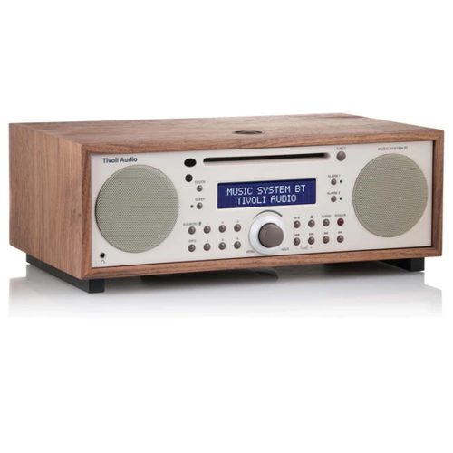 A great sounding, compact audio system. The all-in-one Music System BT offers AM and FM radio, CD, and Bluetooth for audio playback in stereo with additional bass provided from the down-firing subwoofer. An easy-to-see display, digital clock with battery back-up, full-function remote control, snooze and sleep timer, and dual, independent alarms are also onboard. Take all of this and house it in a hand-crafted, real-wood cabinet, and you have our complete all-in-one system.