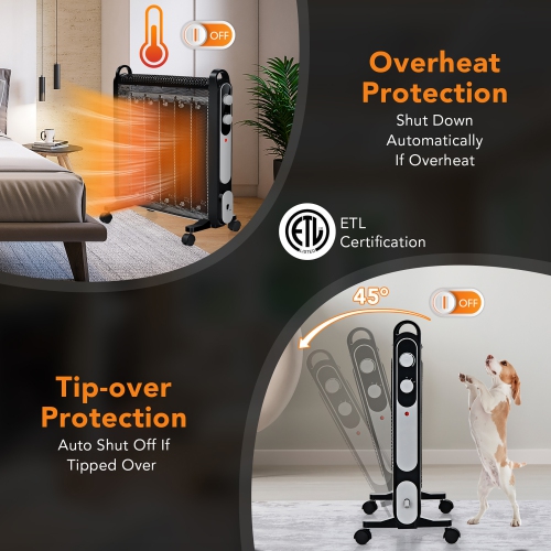 Heats up your room quickly and effectively thanks to its mica heating element