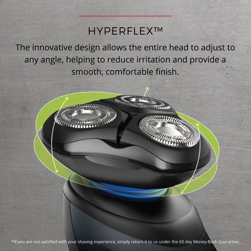 Max comfort Hyperflex technology allows the whole shaver head to conform to the contours of your face