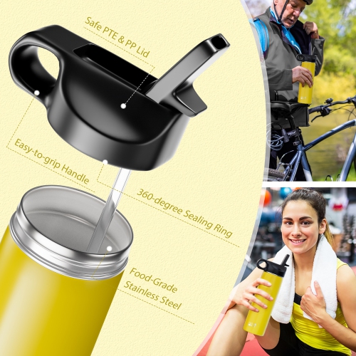 Costway 22 oz Double Wall Insulated Water Bottle Stainless Steel w/ 2 Lids & Straw