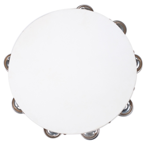 10-inch Tambourine with Skin Head, Single Row of Jingles, Wood Frame, Trophy-Duplex Item B310.