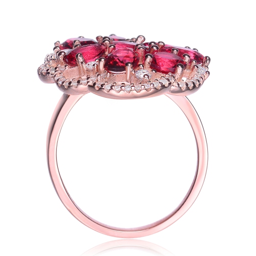 Rozzato Sterling Silver Rose Gold Plated Ruby Cubic Zirconia Coctail Ring Size 6