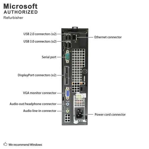 ·May be eligible for return. See the Return Policy tab for details. Dell’s most powerful commercial desktop ever, the Dell OptiPlex 9020 is the world’s most manageable Intel vPro enabled desktop and delivers leading-edge reliability and security.Product Features:Dell OptiPlex 9020 USFF- CPU: Intel Quad Core i5 4570S up to 3.6 GHz- Memory: 16 GB DDR3- Storage: 512 GB SSD- Optical: DVD-ROM- Video Interfaces: (1) VGA port, (2) DisplayPort- USB Ports: (2) USB 3.0 ports, (4) USB 2.0 ports- Operating System: Windows 10 Professional 64 Bit – Multi-language supports English/French/Spanish- Warranty: 1 full year Parts and Labor Warranty- Ships To: Canada, No P.O. BoxesWhat’s included:- Software: Microsoft Office 30-day Free Trial- Included in the box: Computer; Power Cord; USB Keyboard; USB Mouse; USB Bluetooth 4.0 Adaptor; USB WiFi Adaptor; Warranty InstructionThis Refurbished product was revived by one of the Leading Refurbished Computer Manufacturer in North America. As the Canadian largest Refurbished computer provider, we produce and ship out over 25,000 pcs business Class PC, Laptops, LCD, Tablet each Month, all units are installed with Genius Windows Systems and made follow by Microsoft's high standard Requirements. They will be inspected, reconfigured, cleaned and re-packaged like new. The refurbished product allows customer to enjoy high-quality device at a fair price.