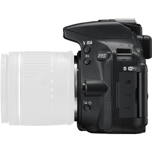 Grow your capabilities as you go. The D5600 is compatible with most NIKKOR lenses, from close-up macro lenses to powerful telephoto zoom lenses. Take control of the lighting with Speedlight flashes, either on-camera or remote. Add a wired or wireless microphone and so much more.Compact, capable, and connected, the Nikon D5600 is a sleek DSLR that blends multimedia imaging capabilities with versatile wireless technology. Centered around a 24.2MP DX-format CMOS sensor and EXPEED 4 image processor, the camera offers a sensitivity range from ISO 100-25600 to benefit working in an array of lighting conditions, and the sensor and processor combination also supports continuous shooting up to 5 fps for working with moving subjects. Full HD 1080p video recording is also supports up to 60 fps, and time-lapse movies can be created in-camera, too.While slender in stature, the D5600 does feature a large 3.2 1.037m-dot rear LCD touchscreen, and utilizes a vari-angle design to better facilitate working from high and low shooting angles. Additionally, SnapBridge is also featured, which can utilize Bluetooth low energy technology for wireless sharing of photos to your mobile device, including automatic transferring of resized images between the camera and your mobile device for seamless online sharing. Wi-Fi with NFC is featured, too, for larger file transfers, such as movies, to a linked device.24.2MP DX-Format Sensor and EXPEED 4 Processor