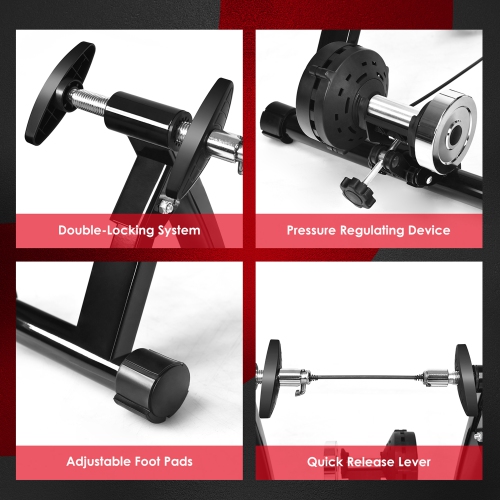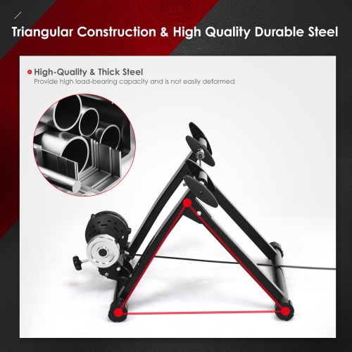 Our bike trainer stand will be your perfect indoor cycling workout assistant! Made of high quality steel, this trainer stand features great sturdiness and durability for meeting your needs of long-time daily cycling exercises and ensuring your safety when in use. The nylon anti-slip feet pads will also help reduce the vibration and avoid slip and scratch. Moreover, you can enjoy really quiet workout condition due to its noise reduction design and thus not disturbing others in private or public spaces. You can take this lightweight and foldable exercises stand with you to challenge yourself in exciting cycling anywhere and anytime!
