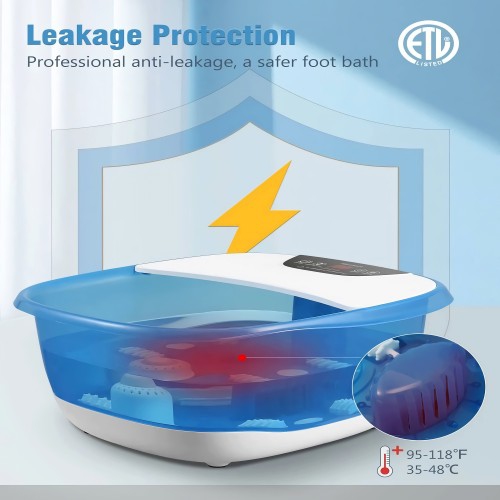 2.Fast Heating and Temperature Maintenance: The heating element of this foot bath massager heats and maintains water at selected temperature efficiently (35-48 degrees Celsius), without hassle of filling hot water or temperature dropping.