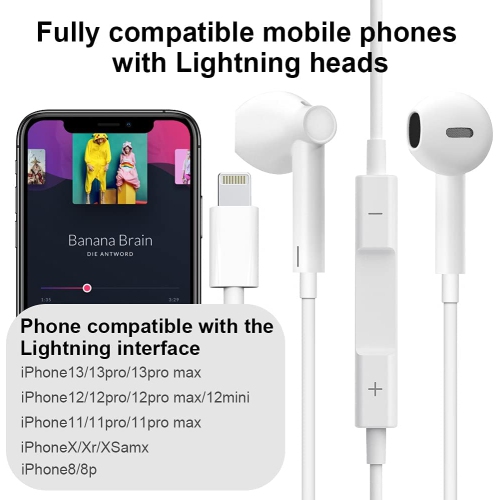 ?(MFi certified headset): Official MFi certified, connect directly to iPhone or other devices through the Lightning interface. ?(Free switching): The headphone cable comes with a microphone and controller. A multi-function button allows you to answer/hang up calls, play/pause, skip and play songs through the headset. No need to take out the headset phone. The built-in microphone allows you to talk hands-free. ?(Comfortable design): Ergonomic ultra-light in-ear headphones. Each ear of these headphones has a dynamic 10mm speaker, adjusted to obtain clearer mid-range and deeper bass. The in-ear design helps to minimize environmental noise and bring a smoother experience, suitable for various activities such as jogging, running and fitness. ?(Quality and Durability): Reliable product quality, coupled with our responsible replacement policy, matches your consistent listening experience. Quality and durability: Reliable product quality, coupled with our responsible replacement poli
