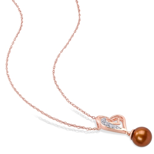 • Pendant features 7 to 7.5mm freshwater brown pearl set in 10K rose gold