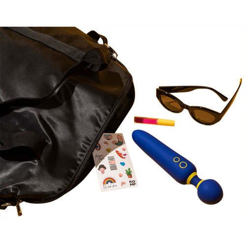 Comes with ROMP stickers, a USB charging cable, and operating instructions