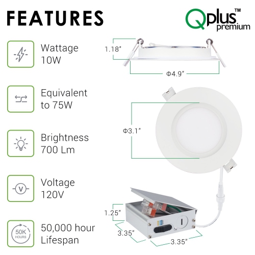 Long lifespan: This easy-to-install, ultra-thin recessed led light has a lifespan of 50000 hours and comes with a 5-year warranty.