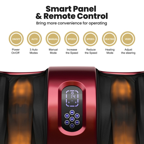 Our foot/calf/leg/arm/ankle massager comes with 3 auto modes and a manual mode that allows you to custom your massage experience with 3 speed intensities and a steering function. More than that, there exist a 3D massage system to fully relieve your sole, heel, and arch with deep kneading, rolling, shiatsu, and scraping massage. It also features a heating system with comfy heat (maximum running temperature: 104℉) to promote blood circulation and relieve tired muscles. Furthermore, the electric deep rolling massager is equipped with an LCD screen and a remote control for clear viewing and easy control, providing a more convenient environment for people with reduced mobility. The multifunctional foot massager can be the perfect gift to your loved ones!