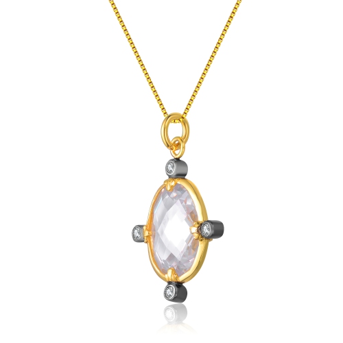 Rozzato Gold Overlay Cubic Zirconia Silver Accent Necklace