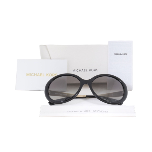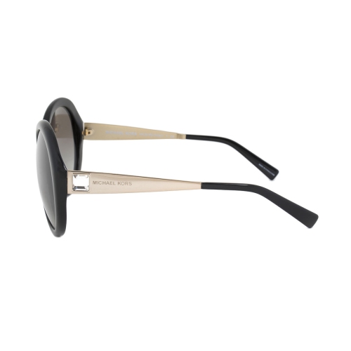 Look like a movie star in these Michael Kors MK2015B Willa 1 Sunglasses. The round, oversized black acetate frame is full-rimmed and has a single bridge. The gold metal arms showcase a gorgeous square rhinestone next to the Michael Kors logo at the temples, and the arms are tipped in black acetate.