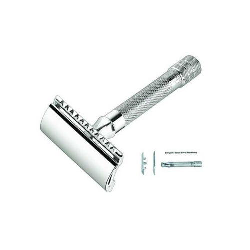 The Merkur 33C Classic Double-Edge Safety Razor features an easy to grip, comfortable handle.It features a short handle, which enables safe shave even in delicate areas. The comb has a straight foam edge and a fixed blade gap. You can intuitively find the setting angle of the cutting edge. After that, nothing stands in the way of a perfectly smooth shave!