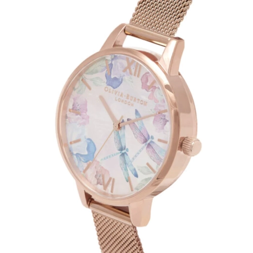 Olivia Burton Dragonfly Thin Case Rose Gold Mesh Watch #OB16PP83