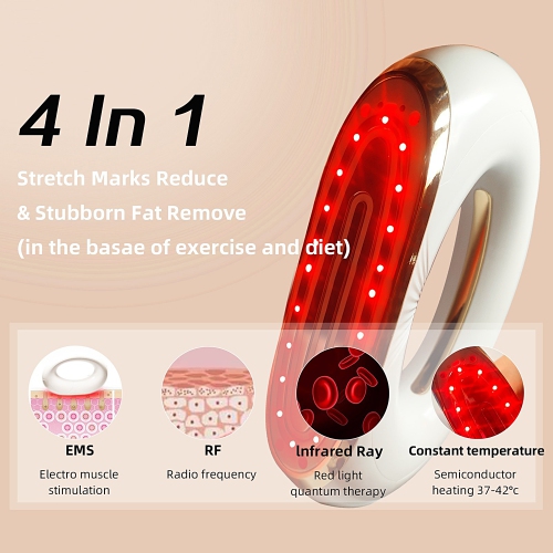 Use for 15 minutes a day to see results! This 4-in-1 powerful device creates a safe, painless and effective at home treatment to reduce the appearance of cellulite and body fat. Electro Muscle Stimulation, RF Radio Frequency waves, Far Infrared Red Light Technology and Heat work simultaneously to achieve results. Get at Home Body Fat Slimming & Skin Tightening with the Fat Smoother.