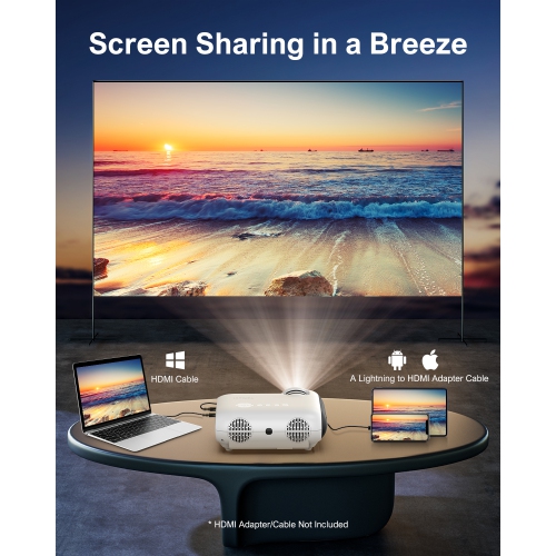 Delight in 1080P Cinema Anytime: The 1080p projector features native 1080P resolution, optimized light cone technology and a post-film mirror for further even light reflection, bringing your home theater experience to life in stunning clarity.(Supports 4k video via HDMI connection)