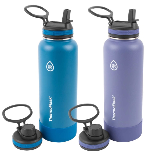 ThermoFlask Stainless-Steel Bottle 1.2L (40oz) Spout & Straw Combo 2-Pack Blue & Mauve