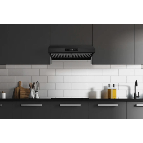 This ventilation hood’s clean and sharp lines, industrial styling, and flawless stainless steel body make it the perfect professional style extractor fan for discerning home chefs. The contemporary under cabinet range hood features the functionality you would expect from a premium kitchen ventilation appliance, all controlled by a smooth and understated digital screen.
