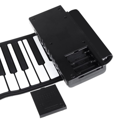 The keys of this musical instrument are made from silicone-rubber, ABS resin which allows the keyboard to be folded, bent, wrapped and rolled without damage.