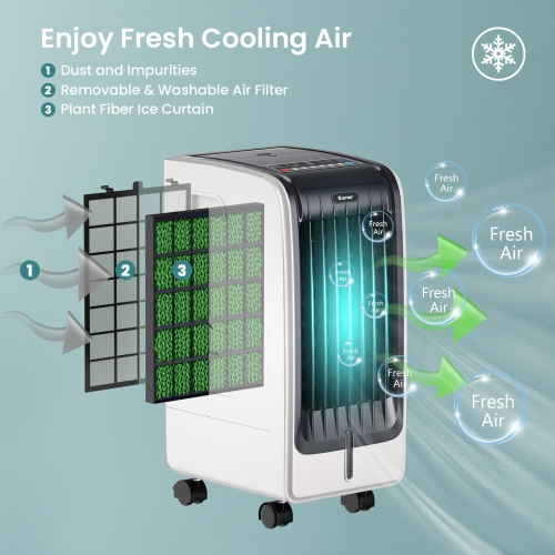 Timer Function:8-hour timer function make the air cooler stop automatically after you set the performance time. Then you could fall in sleep securely