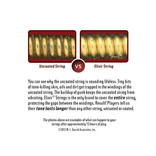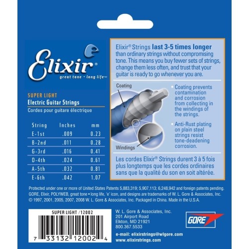 Electric Elixir® Strings with NANOWEB® Coating deliver the presence, punch, and personality of traditional electric guitar strings but with extended tone life, consistent performance and greater playability. With less hassle and expense of frequent string changes, you enjoy more time making music. While other electric strings lose their mojo fast due to dirt and debris, Elixir Strings is the only coated string brand to protect the entire string with an ultra-thin coating, keeping gunk out of the gaps between the windings. The Anti-Rust Plated Plain Steel Strings also resists tone-deadening corrosion, ensuring longer life for the entire set.