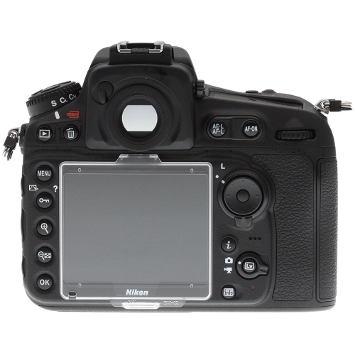 The D810 utilizes dual media slots for both Compact Flash and SD cards, and it provides a built-in flash with i-TTL metering as well as a hot shoe mount. A larger grip enables comfortable control for extended shooting, and a secondary i button has been added to back panel for faster access to important settings.