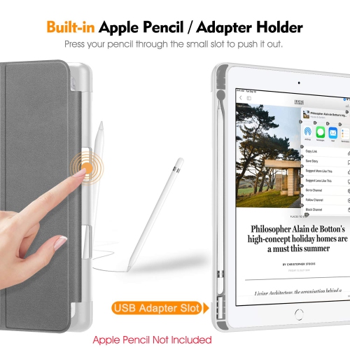 Built-in Pencil holder & adapter slot, grab your Apple Pencil & adapter effortlessly whenever you want, easily to carry your pencil with your device. (Case only, other accessories not included!)