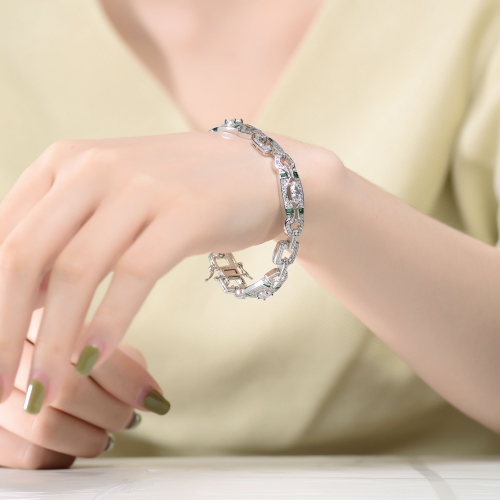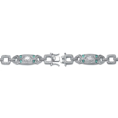 Rozzato Sterling Silver Clear And Green Cubic Zirconia Link Bracelet