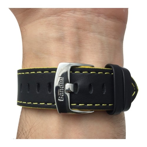•22mm Genuine Italian Leather Watch Strap Band with Stainless Buckle