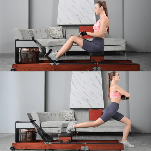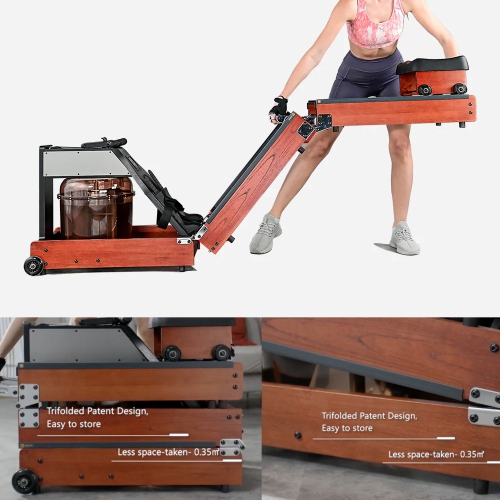 The Kingsmith WR1 rowing machine, with its new triple folding system exclusive to this brand, will allow you to save space in your home. A machine connected to its own app that works through water resistance thanks to its built-in tank. In addition, its wooden finish will fit perfectly in any room of your home.
